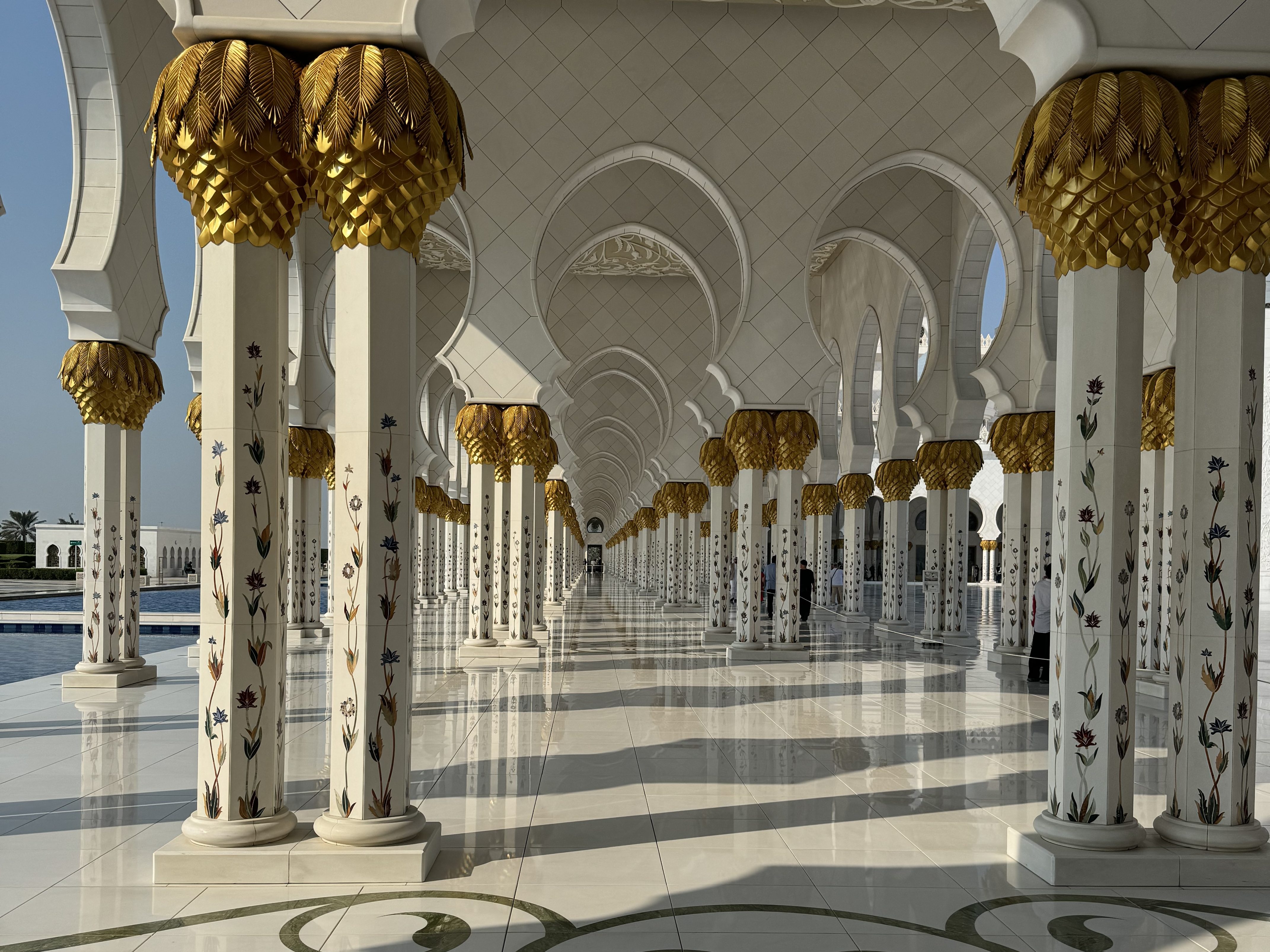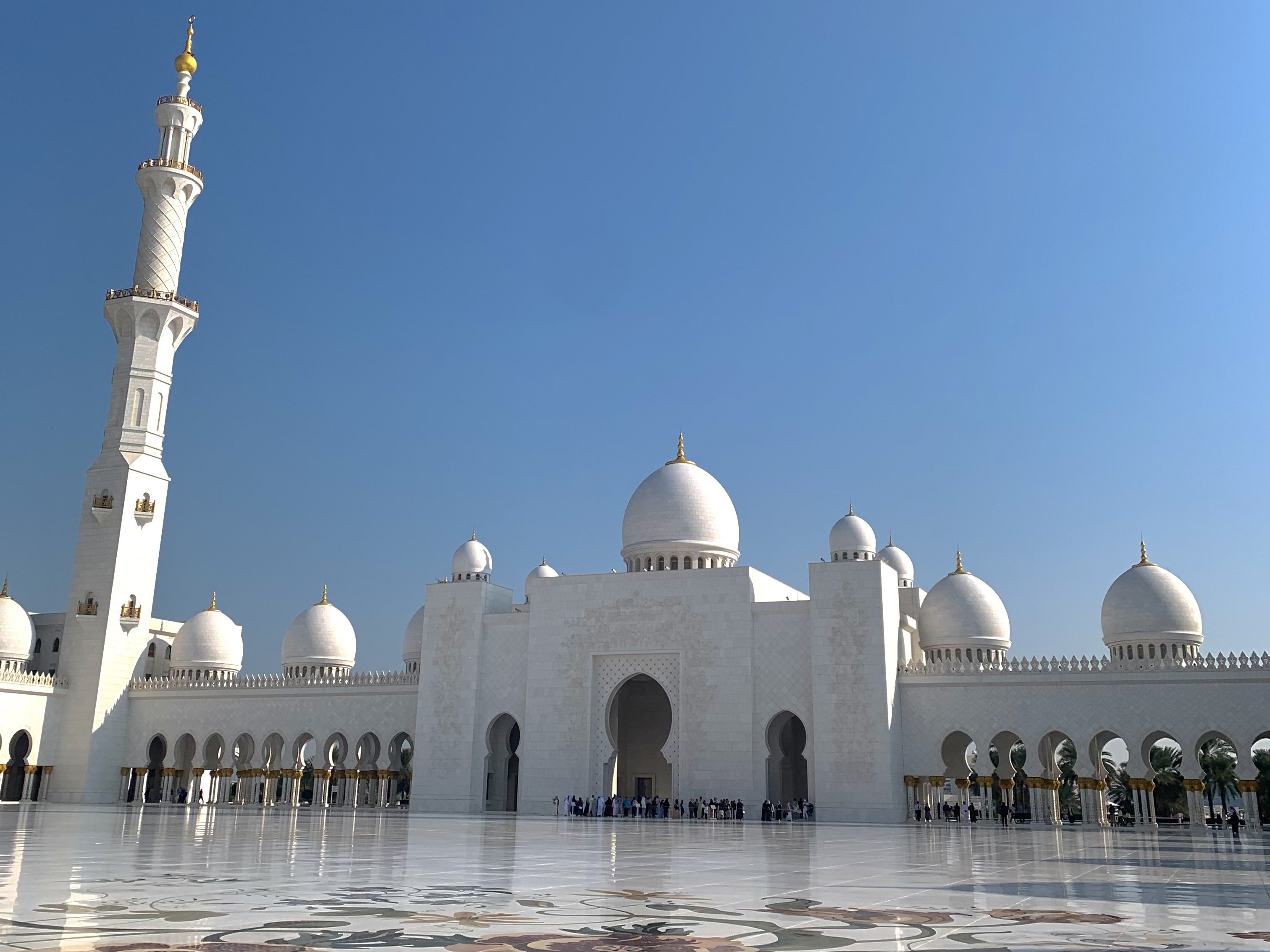 La visita a la mezquita fue la última cosa que hice en Abu Dhabi antes de volver al aeropuerto. Después de 13 horas de vuelo y 8 horas explorando la ciudad, estaba agotada, pero al ver la mezquita me quedé sin palabras. Su inmensidad, el impecable blanco de sus mármoles y los reflejos del sol me hicieron sentir que todo el cansancio valió la pena. Fue, sin duda, la mejor forma de despedirme de Emiratos.